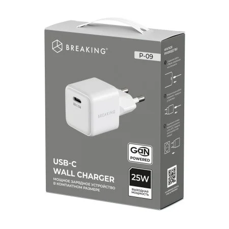 СЗУ Breaking P-09, USB-C, GaN 25W, 3.0A (Белый) в