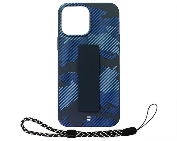 Чехол iPhone 13 Pro Max Камуфляж с держателем (синий)