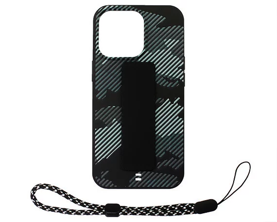 Чехол iPhone 13 Pro Камуфляж с держателем (черный)