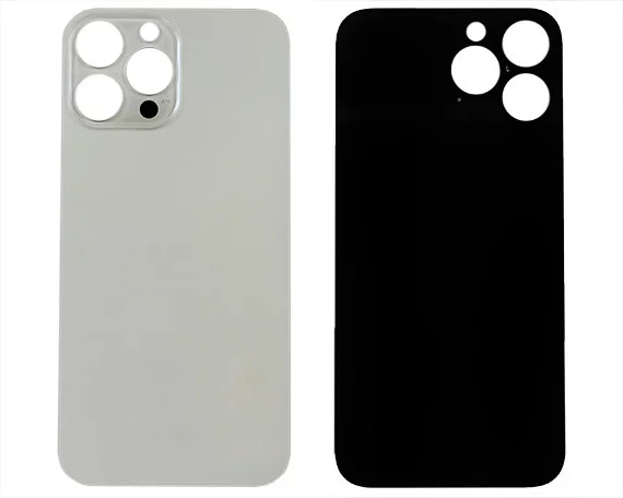 Задняя крышка (cтекло) iPhone 13 Pro Max (с увел. вырезом) белая 1 класс
