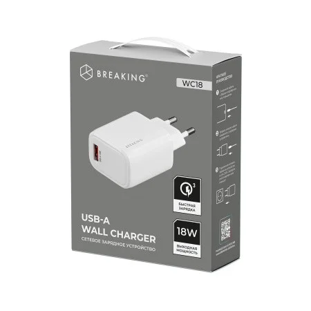 СЗУ Breaking WC18, USB-A, 18W, QC 3.0, 3.0A (Белый) СЗУ Breaking WC18, USB-A, 18W, QC 3.0, 3.0A (Белый)