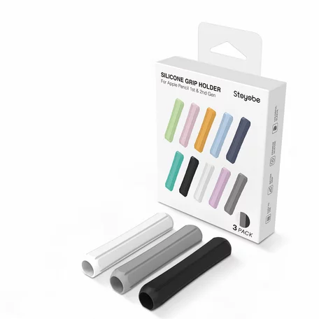 Чехол-держатель для захвата Apple Pencil 1/2Gen Stoyobe, комплект 3шт, белый/серый/черный
