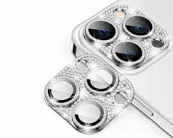 Защитная накладка на камеру iPhone 12 Pro 3D со стразами серебристая
