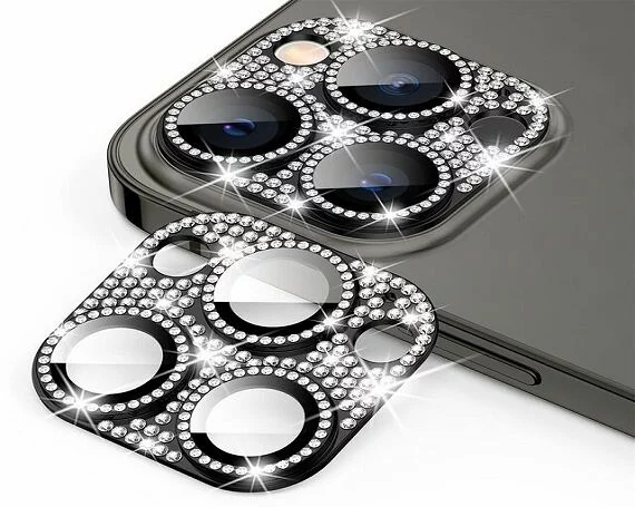 Защитная накладка на камеру iPhone 12 Pro Max 3D со стразами черная в