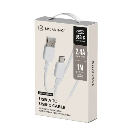 Кабель Breaking Classic, USB-A - USB-C, 20W, 2.4A, 1м (Белый) в