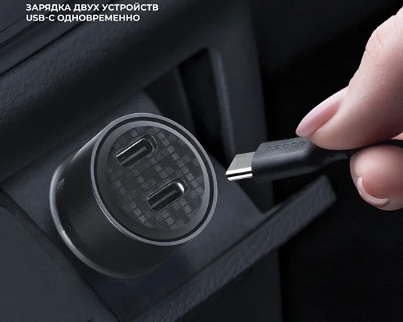 АЗУ-2USB-C Deppa PD, QC3.0, 50W, Crystal, прозрачный, черный, 11219
