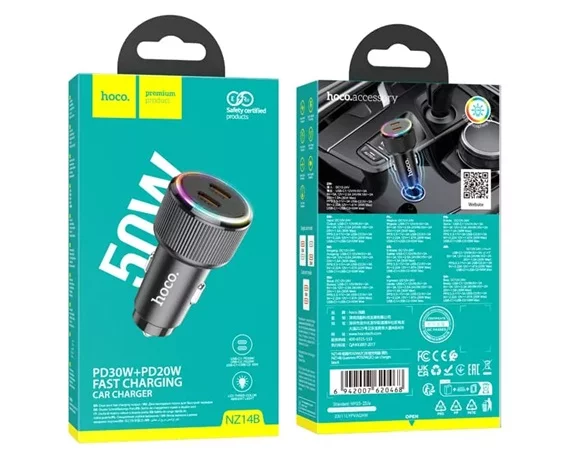 АЗУ-2USB-C Hoco NZ14B Guerrero 50W, черный АЗУ-2USB-C Hoco NZ14B Guerrero 50W, черный АЗУ-2USB-C Hoco NZ14B Guerrero 50W, черный