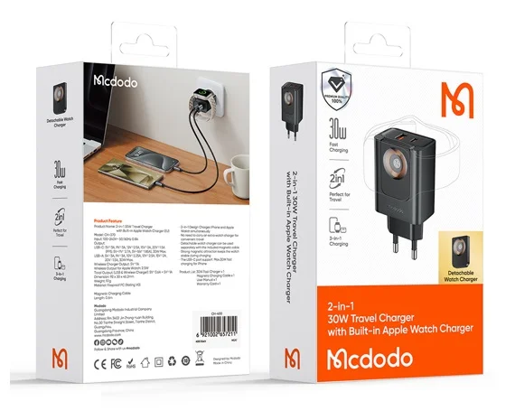 СЗУ-1USB +1USB-C+Apple Watch McDodo CH-3700, 30W, черный в