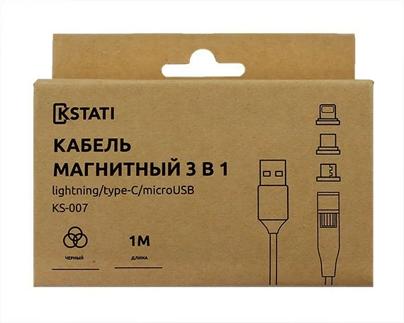 Кабель Kstati магнитный 3в1 KS-007 (micro, lightning, type-c) черн, 1м в Иркутске