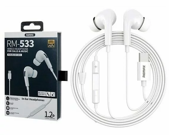 Наушники Remax RM-533a Type-C белые с микрофоном в Иркутске