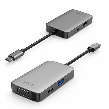 Type-C HUB Wiwu Alpha 513HVP, серый (Type-C - 3.5 мм+HDMI+VGA+USB-A 3.0+Type-C) в Иркутске
