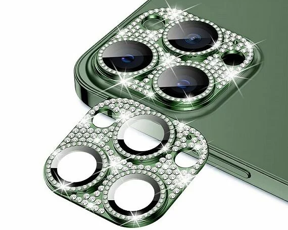 Защитная накладка на камеру iPhone 11 Pro/11 Pro Max 3D со стразами зеленая в Иркутске