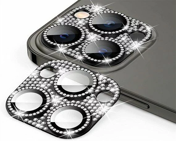 Защитная накладка на камеру iPhone 13 Pro/13 Pro Max 3D со стразами черная в Иркутске