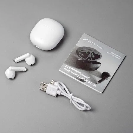 Беспроводная стереогарнитура TWS Breaking BT-06, Bluetooth 5.3 (Белый) в