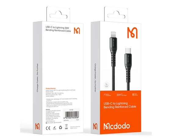 Кабель McDodo CA-5630 Type-C - Lightning 36W, черный, 0,2м в Иркутске