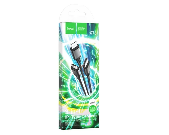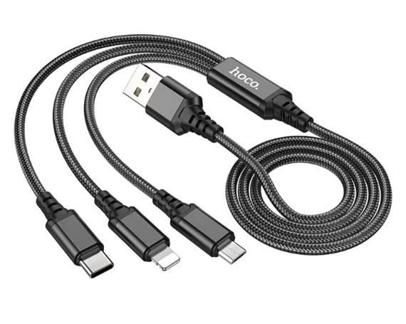 Кабель 3в1 Hoco X76 Lightning+microUSB+Type-C - USB 1м, черный в Иркутске