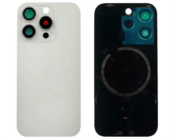 Задняя крышка (стекло) iPhone 15 Pro (со стеклом камеры в сборе) белый титан Original 100% Б/У в Иркутске