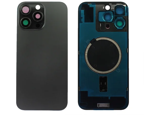 Задняя крышка (стекло) iPhone 16 Pro Max (со стеклом камеры в сборе+магнит) черный титан 1 класс
