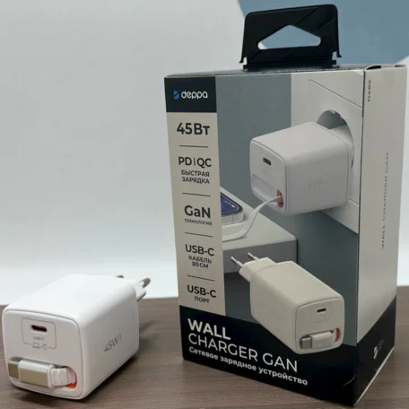 СЗУ-2USB-C Deppa, PD, 3.0, QC4.0+, 45W, GaN белый, 11485