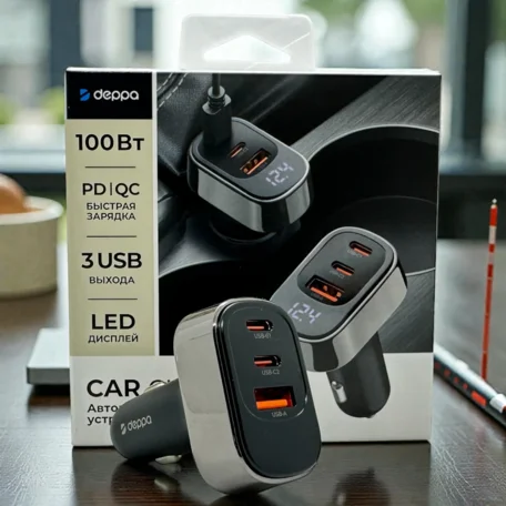 АЗУ-1USB + 2USB-C Deppa PD, QC3.0, 100W, дисплей металл, черный в Иркутске