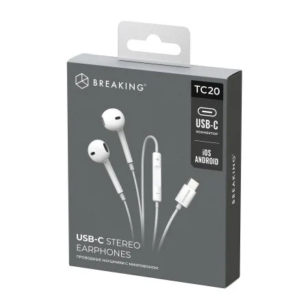 Стереогарнитура Breaking TC20 внутриканальные, USB-C, 1,2м (Белый) в